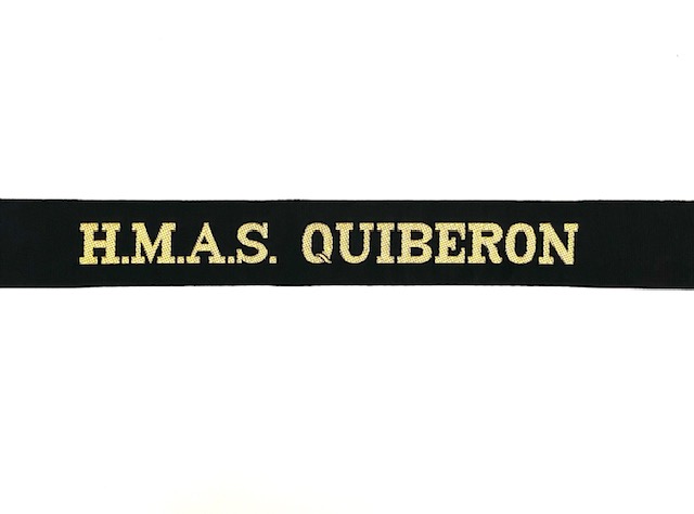 HMAS QUIBERON Uniform Tally Band used in Royal Australian Navy - Gold Metalic thread ready to tie onto your cap