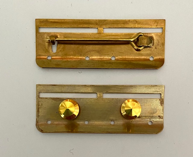 Full-size court mounted with Brooch Pin on the back or Two Pins with Spring clips for extra strength.